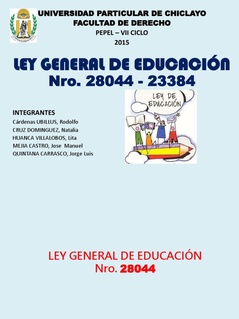La presente ley señala las normas generales para regular el servicio público de la educación que cumple una función social acorde con las necesidades e intereses de las personas, de la familia y de. Start studying ley general de educacion. Análisis de la ley general de educación n° 28044 y constitución política. La obligatoriedad de la educación superior corresponde al estado en los términos dispuestos por la fracción x del artículo 3o. Espero te sirva para estudiar.pará consultar las diapositivas entra a mi blog.