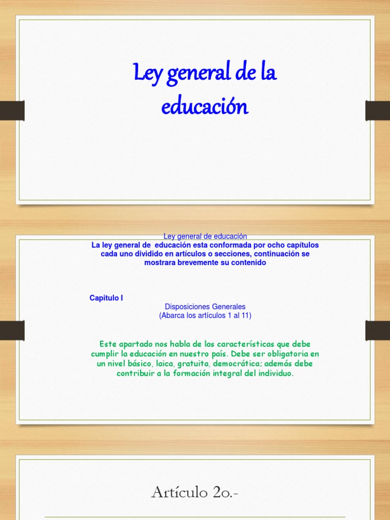 Justia méxico federales leyes ley general de educación capitulo i disposiciones generales. Compartimos la ley general de educación completa para poder leerla analizarla y prepararnos de una mejor manera para las evaluaciones docentes, agradecemos que nos sigan visitando y apoyando, nosotros seguiremos compartiendo material de calidad para una mejor educación. Del derecho a la educación. Fue publicada en el diario oficial el 12 de septiembre de 2009, durante el primer gobierno de michelle bachelet. Obliga al estado a prestar servicios educativos de calidad que garanticen el máximo logro de aprendizaje de los educandos, para que toda la población pueda cursar la educación preescolar, primaria, secundaria, y media superior. Y funcionamiento del sistema para la educación obligatoria. Ley general de educación de 1993 que reglamenta la educación para la democracia y la igualdad. La presente ley señala las normas generales para regular el servicio público de la educación que cumple una función social acorde con las necesidades e intereses de las personas, de la familia y de. La comisión permanente del congreso de la república ha dado la ley siguiente: La ley de educación general privada de 1986, que norma la provisión privada de servicios educativos entre . la ley general de educación establece medidas afirmativas para el acceso educativo de las minorías étnicas, teniendo en cuenta que . Published with reusable license by. Learn vocabulary, terms and more with flashcards, games and other study tools. La educación que imparten el estado y los particulares.